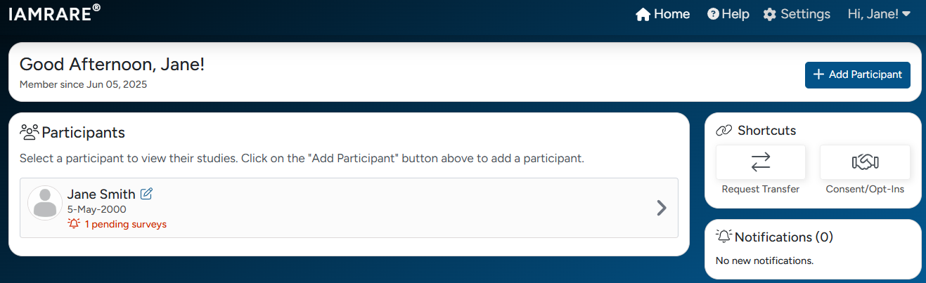 Step 3: If you are the Participant themself (i.e., the person with the disease), please enter your information Select Self for “Who is Being Added as a Participant?”.