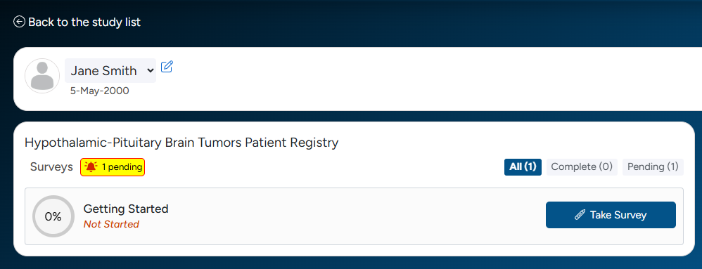 Step 4: Then, you must complete “Demographics of the person with the disease” before taking any other surveys.